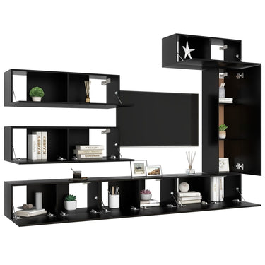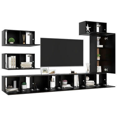 7-tlg. TV-Schrank-Set Schwarz Holzwerkstoff