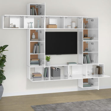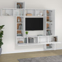 Dieses TV-Schrank-Set mit modernem Design und großem Stauraum wird zum Hingucker in Ihrem Wohnzimmer. Langlebiges Material: Holzwerkstoff ist ein Material von außergewöhnlicher Qualität mit glatter Oberfläche, das sich durch Festigkeit, Stabilität und Feuchtigkeitsbeständigkeit auszeichnet.Viel Stauraum: Das TV-Möbel-Set bietet viel Platz für Multimediageräte, DVD-Player, Elekronikgeräte, Bücher und allerlei Kleinkram.Wandmontage: Der Fernsehschrank kann an der Wand montiert werden, um zusätzlichen Stauraum zu schaffen. So kannst du deine Bodenfläche maximieren und dein Zimmer aufgeräumt und sauber halten.Modulares TV-Möbel: Aufgrund des modularen Aufbaus der Fernsehschränke hast du eine Aufbewahrungslösung, die ganz auf dich und deinen Wohnraum zugeschnitten ist. Hinweis:Schrauben und Dübel für die Wandbefestigung sind nicht enthalten. Suchen und verwenden Sie die für Ihre Wände geeigneten Schrauben und Dübel. Wenn Sie unsicher sind, suchen Sie professionelle Hilfe. Lesen und befolgen Sie jeden Schritt der Anleitung sorgfältig.Jedes Produkt wird mit einer Montageanleitung in der Verpackung für eine einfache Montage geliefert.