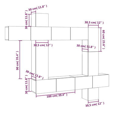 9-tlg. TV-Schrank-Set Grau Sonoma Holzwerkstoff