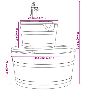 Gartenbrunnen mit Pumpe 44,5x44,5x58 cm Massivholz Tanne