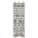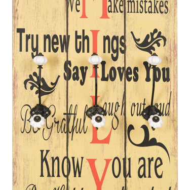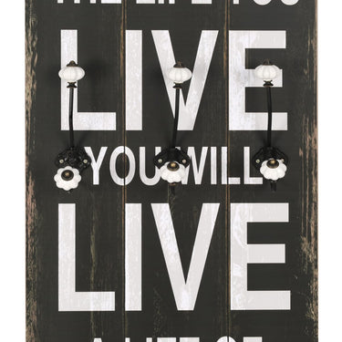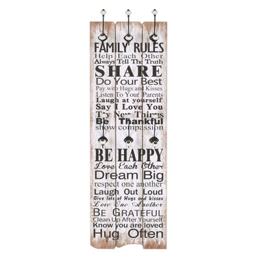 Mit dem Schriftzug im Vintage-Stil Be thankful Always forgive Share Respect one another Show compassion We make mistakes Try new things Say I love you Be grateful Laugh out loud Know you are cherished Be happy, wird diese Wandgarderobe mit 6 Haken zu einem echten Hingucker, den Ihre Gäste sofort bemerken werden. Die Garderobe besteht aus MDF-Platte, die sehr robust ist. Sie verfügt über 2 Reihen von 3 exquisiten Metallhaken und bietet daher reichlich Platz für Ihre Mäntel, Taschen, Schals, Hüte oder andere kleine Gegenstände. Mit 2 Befestigungspunkten auf der Rückseite kann die Garderobe einfach an der Wand montiert werden. Die Montage gelingt mühelos. Das Montagematerial ist im Lieferumfang enthalten.