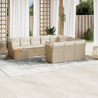 11-tlg. Garten-Sofagarnitur mit Kissen Schwarz Poly Rattan