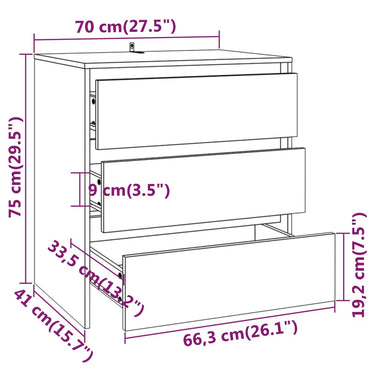 - Abmessungen des Sideboards mit Schubladen: 70 x 41 x 75 cm (B x T x H)