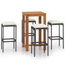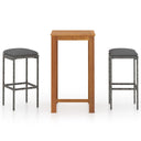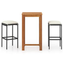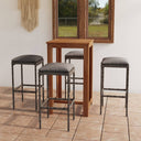 De tafel is gemaakt van massief acaciahout met een olieafwerking, waardoor hij stabiel, duurzaam en eenvoudig te onderhouden is. De barkrukken hebben een gepoedercoat stalen frame dat is bedekt met weerbestendig PE-rattan, hierdoor zijn ze stevig en gemakkelijk schoon te maken. De dikke, afneembare zitkussens zijn uiterst comfortabel. De kussenhoezen met rits zijn gemakkelijk afneembaar en wasbaar.