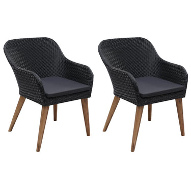 De eettafel is gemaakt van massief acaciahout met een olieafwerking, waardoor hij stabiel, duurzaam en eenvoudig te onderhouden is. De eetstoelen, met een gepoedercoat stalen frame bedekt met weerbestendig PE-rattan, zijn stevig en gemakkelijk schoon te maken. De ergonomisch ontworpen vorm en dik gevoerde kussens zorgen voor het ultieme zitcomfort. De onderhoudsarme polyester kussenhoezen kunnen eenvoudig verwijderd en gewassen worden.