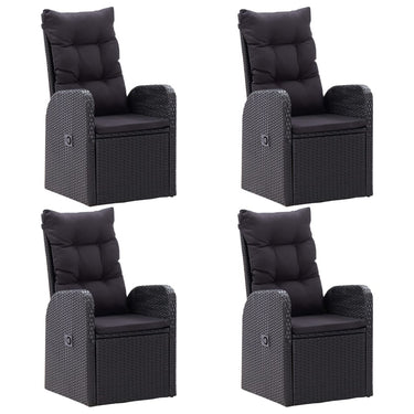 Schaffen Sie mit dieser Garten-Essgruppe eine überzeugende und zusammenhängende Ästhetik in Ihrem Außenbereich! Der Esstisch besteht aus massivem Akazienholz mit Ölfinish, was ihn stabil, langlebig und pflegeleicht macht. Die Esszimmerstühle verfügen über pulverbeschichtete Stahlrahmen, die mit witterungsbeständigem PE-Rattan überzogen sind, und sind daher robust und leicht zu reinigen. Die Rückenlehne lässt sich durch Ziehen am seitlichen Knopf verstellen. Dank ihrer Leichtbauweise lassen sich die Stühle auch einfach umstellen. Sie werden zudem mit äußerst komfortablen, dick gepolsterten Auflagen geliefert, die für höchsten Komfort sorgen. Deren pflegeleichte Bezüge aus Polyester können leicht abgenommen und gewaschen werden. Wichtiger Hinweis: Wir empfehlen, die Essgruppe bei Regen, Schnee und Frost für eine lange Lebensdauer abzudecken.