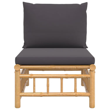 3-tlg. Garten-Lounge-Set mit Dunkelgrauen Kissen Bambus