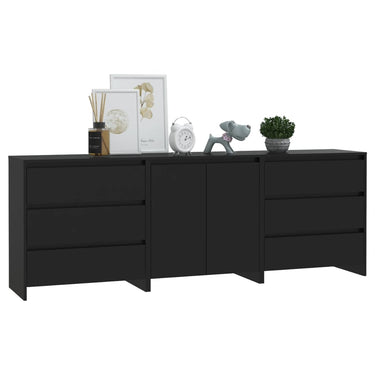 3-tlg. Sideboard Schwarz Holzwerkstoff