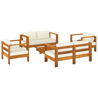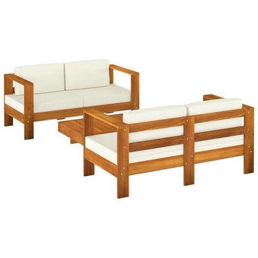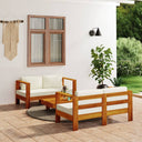 Die Garten-Sofagarnitur ist die perfekte Wahl zum Kaffeetrinken oder Faulenzen. Das Lounge-Set strahlt einen rustikalen Charme aus und wird Ihrem Garten oder Ihre Terrasse Stil und Eleganz verleihen. Dieses Gartenmöbelset ist aus Akazien-Massivholz in Teak-Optik gefertigt, wodurch es robust und langlebig ist und für den Außenwohnbereich geeignet ist. Die Sitzpolster und die Rückenkissen tragen zum Sitzkomfort bei. Dank der ölbeschichteten Oberfläche lässt sich das Garten-Sitzmöbel-Set leicht mit einem feuchten Tuch reinigen. Die Garten-Sofagarnitur ist einfach zu montieren.