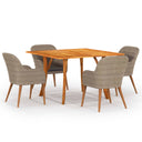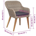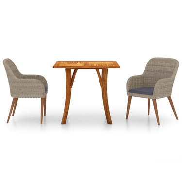 De buitentafel is gemaakt van massief acaciahout, waardoor hij stevig en stabiel is. Het met olie afgewerkt oppervlak maakt de tafel eenvoudig te reinigen met een vochtige doek. De gebogen poten dragen bij aan het trendy design. De eetstoelen hebben een stalen frame bedekt met weerbestendig PE-rattan, waardoor ze stevig en eenvoudig te reinigen zijn. De dik gevoerde kussens bieden extra comfort.