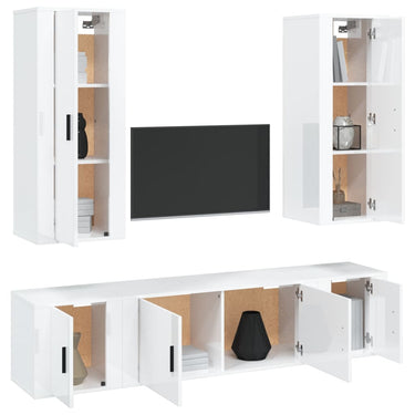 5-delige Tv-meubelset bewerkt hout wit