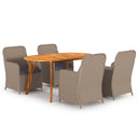 Schaffen Sie mit dieser Garten-Essgruppe eine überzeugende und zusammenhängende Ästhetik in Ihrem Außenbereich! Der Gartentisch ist aus massivem Akazienholz gefertigt, was ihn robust und stabil macht. Durch die mit Öl behandelte Oberfläche lässt sich der Tisch zudem mit einem feuchten Tuch leicht reinigen. Darüber hinaus tragen die geschwungenen Beine zu seinem stilvollen Design bei. Mit einem Stahlrahmen versehen, der mit wetterbeständigem PE-Rattan geflochten ist, sind die Essstühle robust und leicht zu reinigen. Die dick gepolsterten Kissen sorgen für zusätzlichen Komfort beim Entspannen. Hinweis: Um die Lebensdauer Ihrer Gartenmöbel zu verlängern, empfehlen wir Ihnen, diese regelmäßig zu reinigen und bei Nichtgebrauch im Freien abzudecken.Reinigung: Verwenden Sie eine milde SeifenlösungLagerung: Wenn möglich, an einem kühlen, trockenen Ort im Innenbereich lagern. Wenn das Produkt im Freien gelagert wird, schützen Sie es mit einer wasserdichten Abdeckung. Wischen und trocknen Sie das überschüssige Wasser oder den Schnee nach Regen oder Schneefall von der ebenen Fläche. Sorgen Sie für eine ausreichende Luftzirkulation, um feuchtigkeitsbedingte Schäden zu vermeiden.