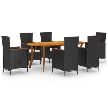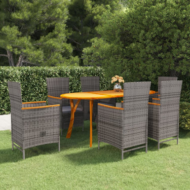 Schaffen Sie mit dieser Garten-Essgruppe eine überzeugende und zusammenhängende Ästhetik in Ihrem Außenbereich! Der Gartentisch ist aus massivem Akazienholz gefertigt, was ihn robust und stabil macht. Durch die mit Öl behandelte Oberfläche lässt sich der Tisch zudem mit einem feuchten Tuch leicht reinigen. Darüber hinaus tragen die geschwungenen Beine zu seinem stilvollen Design bei. Mit einem Stahlrahmen versehen, der mit wetterbeständigem PE-Rattan geflochten ist, sind die Essstühle robust und leicht zu reinigen. Die dick gepolsterten Kissen sorgen für zusätzlichen Komfort beim Entspannen. Hinweis: Um die Lebensdauer Ihrer Gartenmöbel zu verlängern, empfehlen wir Ihnen, diese regelmäßig zu reinigen und bei Nichtgebrauch im Freien abzudecken.Reinigung: Verwenden Sie eine milde SeifenlösungLagerung: Wenn möglich, an einem kühlen, trockenen Ort im Innenbereich lagern. Wenn das Produkt im Freien gelagert wird, schützen Sie es mit einer wasserdichten Abdeckung. Wischen und trocknen Sie das überschüssige Wasser oder den Schnee nach Regen oder Schneefall von der ebenen Fläche. Sorgen Sie für eine ausreichende Luftzirkulation, um feuchtigkeitsbedingte Schäden zu vermeiden.