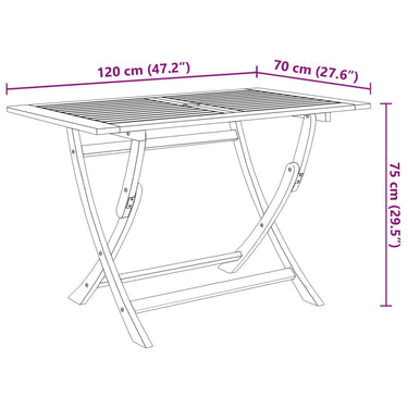 - Tischmaße (zusammengeklappt): 120 x 24 x 105 cm (B x T x H)