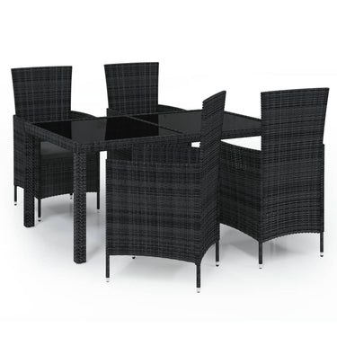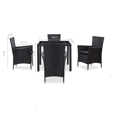 5-tlg. Garten-Essgruppe mit Kissen Poly Rattan Schwarz