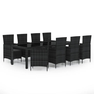 9-tlg. Garten-Essgruppe Poly Rattan Schwarz
