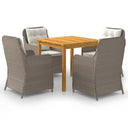 Schaffen Sie mit dieser Garten-Essgruppe eine überzeugende und zusammenhängende Ästhetik in Ihrem Außenbereich! Der Esstisch besteht aus massivem Akazienholz mit einem Öl-Finish, die ihn stabil, langlebig und pflegeleicht macht. Diese Stühle sind robust und einfach zu reinigen, dank einem witterungsbeständigen und pulverbeschichteten Stahlrahmen, der mit witterungsbeständigem PE- Rattan überzogen ist. Die ergonomische Form und die dick gepolsterten Kissen bieten den ultimativen Sitzkomfort. Die wartungsarmen Polyesterkissenbezüge können leicht entfernt und gewaschen werden. Wichtiger Hinweis: Wir empfehlen, die Essgruppe bei Regen, Schnee und Frost für eine lange Lebensdauer abzudecken.
