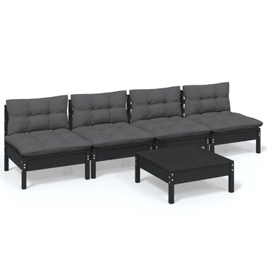 5-tlg. Garten-Lounge-Set mit Anthrazit Kissen Kiefernholz