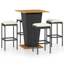 5-tlg. Gartenbar-Set mit Kissen Poly Rattan Grau
