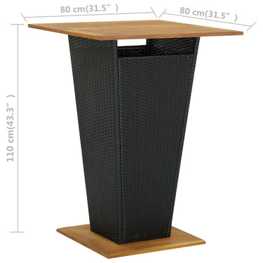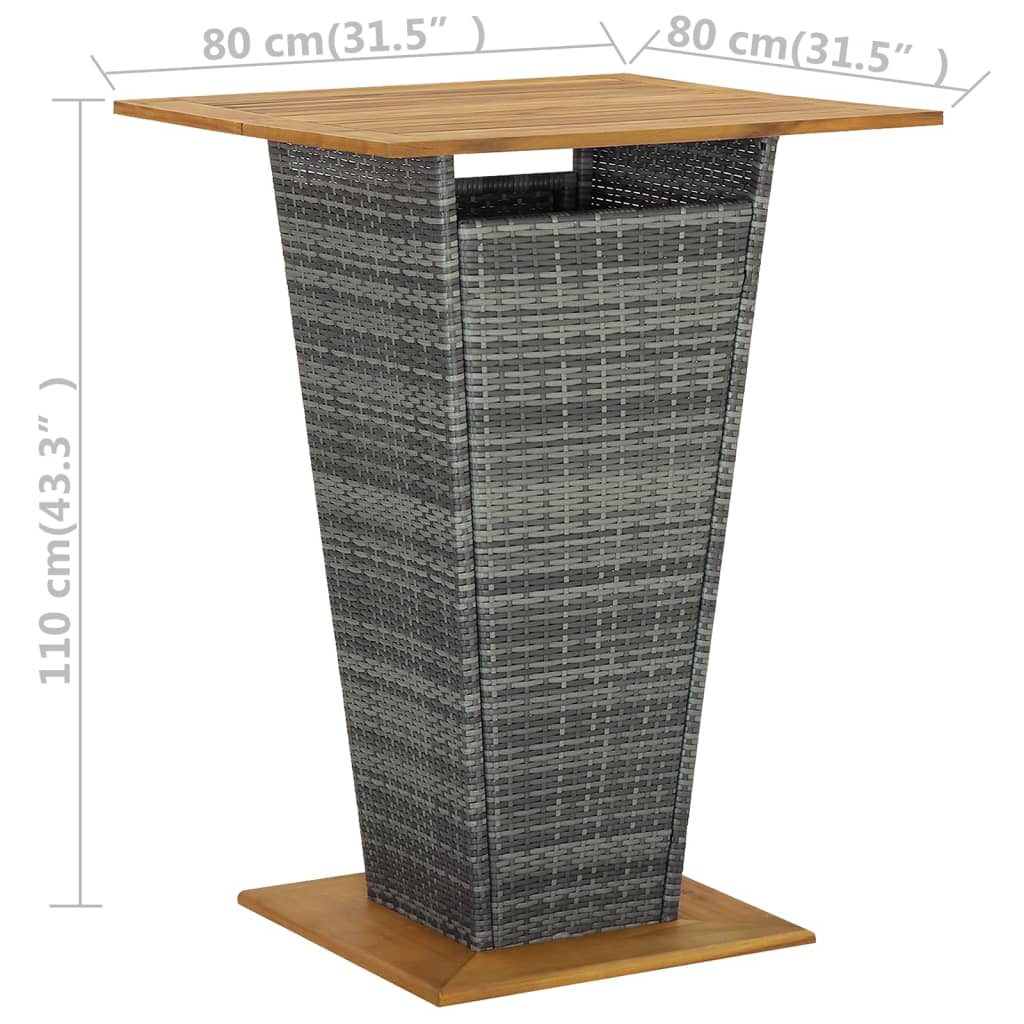 An diesem stilvollen Gartenbar-Set können Sie eine entspannte und angenehme Zeit mit Ihrer Familie und Ihren Freunden verbringen. Von einem pulverbeschichteten Stahlrahmen getragen, mit PE-Rattan geflochten, sorgt dieser Stehtisch für jahrelangen Einsatz im Freien. Zusätzlich sorgen die Tischplatte und der Standfuß aus massivem Akazienholz für zusätzliche Robustheit und Standfestigkeit. Die Barhocker haben eine stabile Konstruktion aus Stahlrahmen und sind mit wetterbeständigem PE-Rattan gefertigt, das für Stabilität und Tragbarkeit sorgt. Das Kissen und die Fußstütze sorgen zudem für zusätzlichen Sitzkomfort des Barstuhls. Hinweis: Um die Lebensdauer Ihrer Gartenmöbel zu verlängern, empfehlen wir Ihnen, diese regelmäßig zu reinigen und bei Nichtgebrauch im Freien abzudecken.Reinigung: Verwenden Sie eine milde SeifenlösungLagerung: Wenn möglich, an einem kühlen, trockenen Ort im Innenbereich lagern. Wenn das Produkt im Freien gelagert wird, schützen Sie es mit einer wasserdichten Abdeckung. Wischen und trocknen Sie das überschüssige Wasser oder den Schnee nach Regen oder Schneefall von der ebenen Fläche. Sorgen Sie für eine ausreichende Luftzirkulation, um feuchtigkeitsbedingte Schäden zu vermeiden.