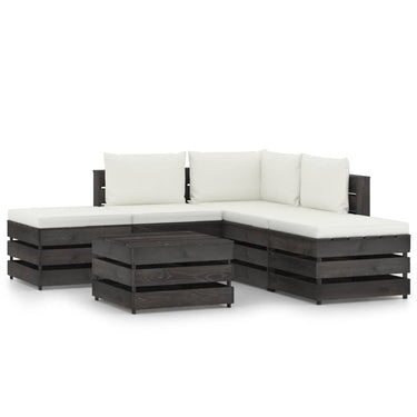6-delige Loungeset met kussens grijs geïmpregneerd hout