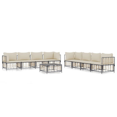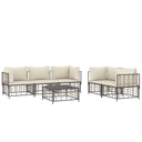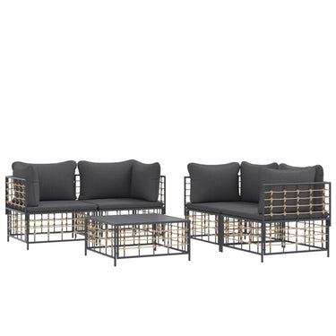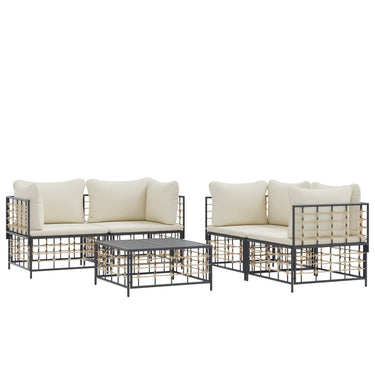 6-tlg. Garten-Lounge-Set mit Kissen Anthrazit Poly Rattan