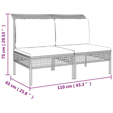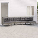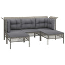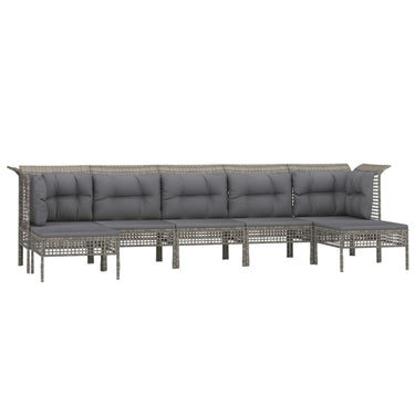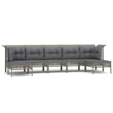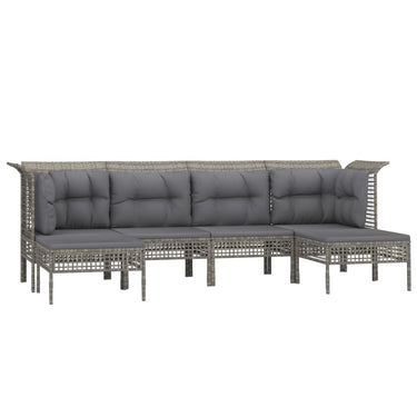 6-tlg. Garten-Lounge-Set mit Kissen Grau Poly Rattan