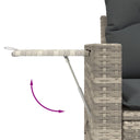Diese Garten-Sofagarnitur ist die perfekte Ergänzung zu deinem Garten, deiner Terrasse oder deinem Innenhof. Sie bietet einen bequemen und einladenden Platz, um mit Familie und Freunden zu plaudern oder dich einfach nur zu entspannen und das Leben im Freien zu genießen. Langlebiges Material: PE-Rattan, auch als Poly Rattan bekannt, ist ein robustes, pflegeleichtes synthetisches Material, das die Optik von natürlichem Rattan aufweist. Es kennzeichnet sich durch ein geringes Eigengewicht und lässt sich einfach reinigen. Aufgrund seiner Haltbarkeit und Witterungsbeständigkeit wird es häufig bei der Herstellung von Gartenmöbeln verwendet.Tischplatte aus Glas: Die Tischplatte des Gartentisches besteht aus starkem und langlebigem Hartglas, sodass sie leicht mit einem feuchten Tuch gereinigt werden kann und deinem Außenbereich einen Hauch von Eleganz verleiht. Praktischer Beistelltisch: Diese Gartengarnitur verfügt über klappbare Ablagen mit Gasfedern an den Armlehnen, auf denen du verschiedene Sachen griffbereit aufbewahren kannst. Bequemes Sitzerlebnis: Dieser Gartensessel mit dick gepolsterten Kissen bietet ein angenehmes Sitzgefühl.Modulares Design: Dank des modularen Designs lassen sich die Gartenmöbel völlig flexibel und einfach umstellen, um deinen Außenbereich ganz individuell zu gestalten. Gut zu wissen:Wir empfehlen dir, deine Gartenmöbel mit einer wasserdichten Hülle zu schützen, um lange Zeit eine ansprechende Optik aufzuweisen.