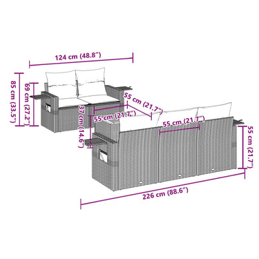 6-tlg. Garten-Sofagarnitur mit Kissen Grau Poly Rattan