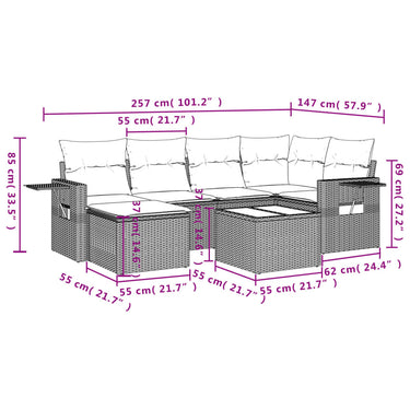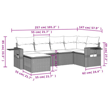 6-tlg. Garten-Sofagarnitur mit Kissen Schwarz Poly Rattan