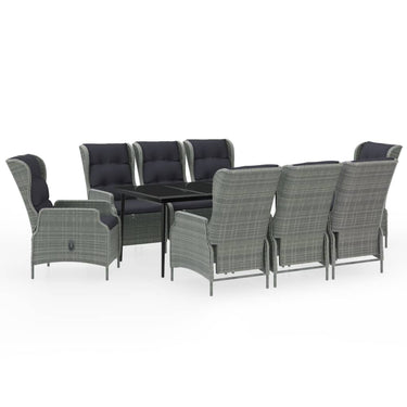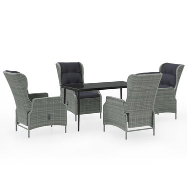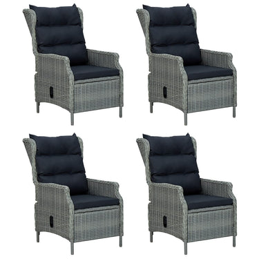 Genießen Sie eine angenehme Mahlzeit oder Ihren Nachmittagstee in Ihrem Außenbereich an dieser Garten-Essgruppe! Mit ihrem eleganten Design wird sie ein echter Hingucker in Ihrem Garten oder auf Ihrer Terrasse sein! Wetterfestes Material: PE-Rattan, auch bekannt als Poly-Rattan, ist witterungsbeständig und leicht zu reinigen. Von außen bleibt es lange schön. Es bietet hohe Qualität, Komfort und ein ästhetisches Aussehen.Stabiler Rahmen: Dank der pulverbeschichteten Stahlrahmen ist die Outdoor-Essgruppe robust, stabil und für den täglichen Einsatz im Außenbereich bestens geeignet.Praktische Tischplatte: Die glatte Tischplatte des Esstisches besteht aus Hartglas, das sich leicht mit einem feuchten Tuch reinigen lässt. Zudem bietet die robuste Tischplatte den perfekten Platz für Speisen, Getränke und einige Dekoartikel.Dank der Gasdruckfeder lässt sich die Rückenlehne je nach Bedarf anpassen. Durch Berühren des seitlichen Knopfs kann die Rückenlehne sogar in eine komfortable Liegeposition gebracht werden.Zusätzlicher Komfort: Die dick gepolsterten Kissen sorgen für höchsten Sitzkomfort in deiner Freizeit. Hinweis:Um die Lebensdauer deiner Gartenmöbel zu verlängern, empfehlen wir dir, sie mit einer wasserdichten Hülle zu schützen.Jedes Produkt wird mit einer Montageanleitung in der Verpackung für einen einfachen Zusammenbau geliefert.