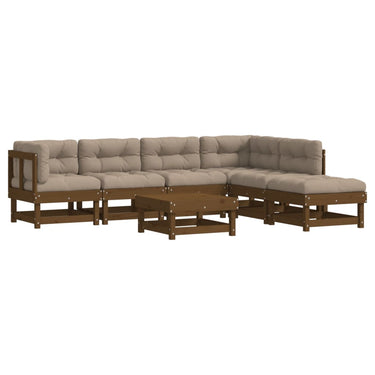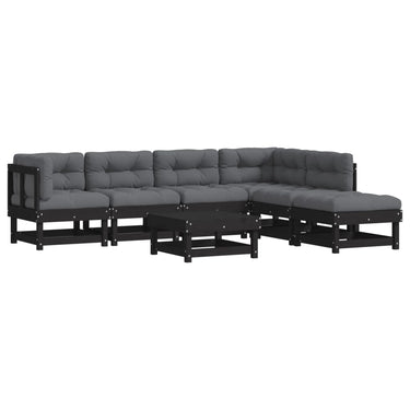 7-tlg. Garten-Lounge-Set mit Kissen Grau Massivholz