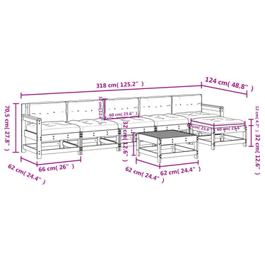 7-tlg. Garten-Lounge-Set mit Kissen Weiß Massivholz