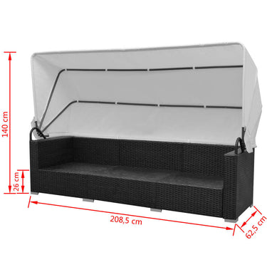 - Komplettmaße Sofa mit Sonnendach: 208,5 x 62,5 x 140 cm (B x T x H)