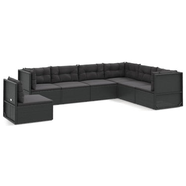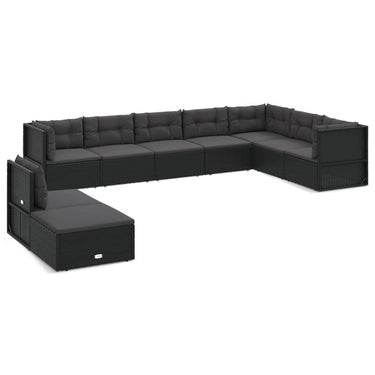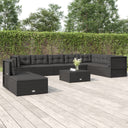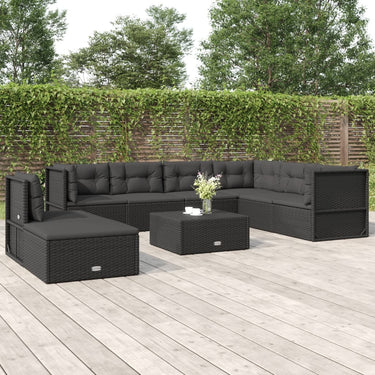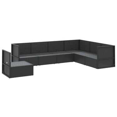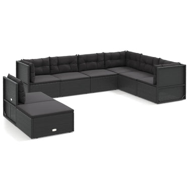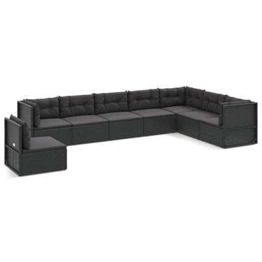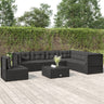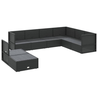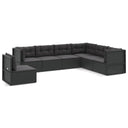 8-delige Loungeset met kussens poly rattan zwart