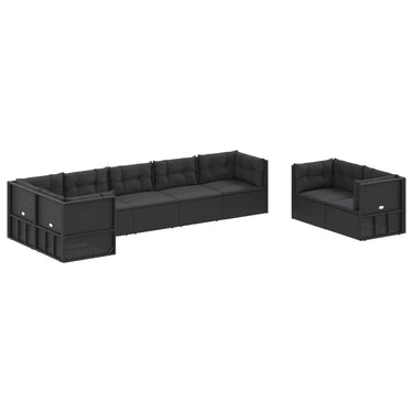 8-tlg. Garten-Lounge-Set mit Kissen Schwarz Poly Rattan