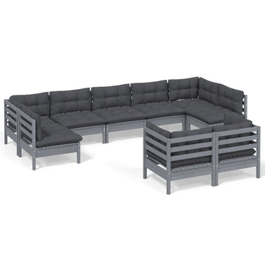 9-tlg. Garten-Lounge-Set mit Creme Kissen Massivholz Kiefer