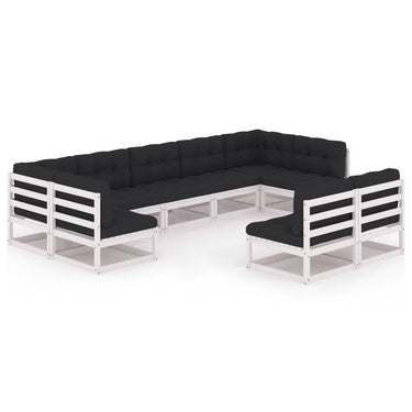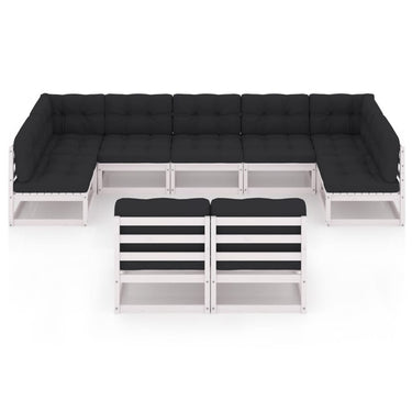 9-tlg. Garten-Lounge-Set mit Kissen Weiß Massivholz Kiefer