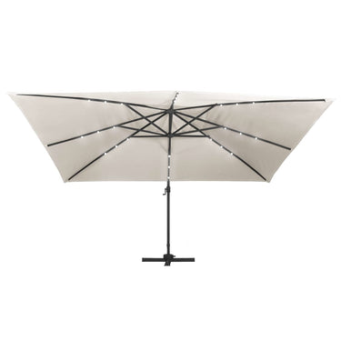 Ampelschirm mit LED-Beleuchtung Alu-Mast 400x300 cm Sandweiß