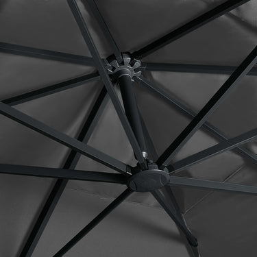 Dieser elegante Sonnenschirm schafft nicht nur ein schattiges Plätzchen in deinem Garten, sondern bietet auch Schutz gegen schädliche UV-Sonnenstrahlen. Die Bespannung besteht aus UV-beständigem und lichtechtem Polyester und bietet daher optimalen Schutz vor der Sonne und ist leicht zu reinigen. Der Sonnenschirm verfügt über 24 solarbetriebene LEDs, die deinen Außenbereich automatisch beleuchten und ein gemütliches und romantisches Ambiente schaffen, wenn die Sonne untergeht. Ein stabiler Kreuzfuß sorgt für zusätzliche Stabilität. Unser Gartenschirm lässt sich durch einfaches Drehen des Knopfes am Mast leicht öffnen und schließen. Die Neigung des Schirms lässt sich durch Drücken und Ziehen des Griffs nach oben und unten verstellen. Der Mast kann außerdem mit dem Pedal um 360 Grad gedreht werden. Der starke, pulverbeschichtete Aluminium-Mast und die 8 robusten Rippen machen diesen Sonnenschirm sehr stabil und langlebig. Der Artikel ist leicht zu montieren. Bitte beachten: Wir empfehlen, die Schirmbespannung mit einem Imprägnierspray zu behandeln, wenn es starken Regenfällen ausgesetzt ist. Hinweis: Das Produkt verfügt über einen USB-Anschluss, aber die zertifizierte 5-V-USB-Stromquelle ist nicht im Lieferumfang enthalten.