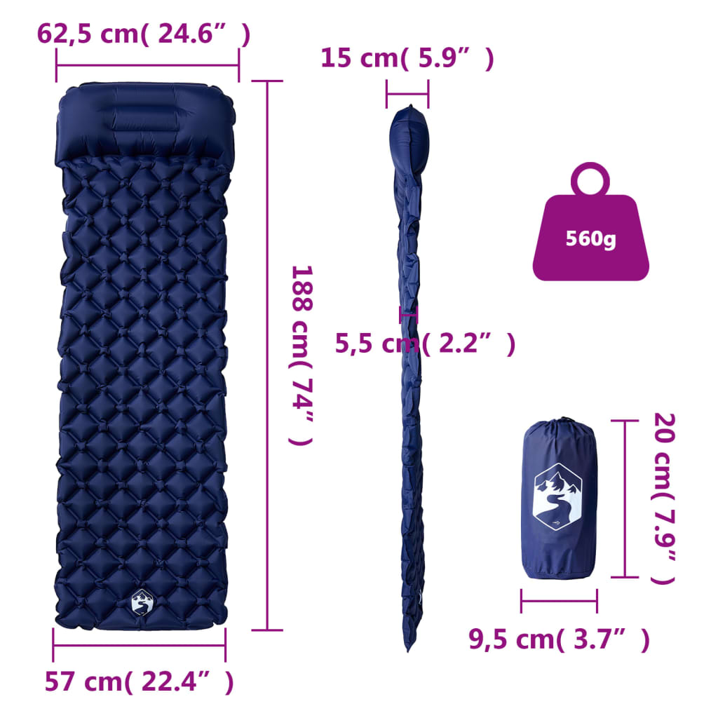 Diese aufblasbare Campingmatratze ist praktisch und bequem und somit perfekt für deine Outdoor-Aktivitäten. Langlebig und wasserfest: Die aufblasbare Campingmatte besteht aus 40D-Nylon mit TPU-Beschichtung, wodurch sie langlebig, wasserfest und witterungsbeständig ist.Bequem: Die selbstaufblasende Campingmatte hat eine Dicke von 6 cm, um dich vor dem kalten, feuchten und unebenen Boden zu schützen. Sie besitzt auch ein integriertes Kissen, um einen angenehmen Schlaf zu bieten.Leicht aufzublasen: Die Camping-Schlafmatte wird durch 8 bis 12-maliges Aufblasen vollständig geformt. Öffne das Ventil, um die Isomatte direkt aufzublasen bzw. sie vollständig zu entleeren.Tragbar: Die Camping-Luftmatratze ist leicht und lässt sich nach dem Zusammenrollen in der kompakten Tragetasche verstauen. Sie nimmt kaum Platz in Anspruch und eignet sich daher ideal für Reisen, Picknicks, Wanderungen und Camping. Gut zu wissen:Bitte wasche die Matte nur von Hand und halte sie von scharfen Gegenständen fern.