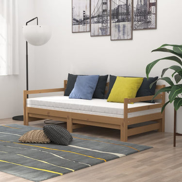 Dieses multifunktionale Tagesbett aus Holz kann tagsüber als Sofa und nachts als Bett verwendet werden, um eine schnelle Lösung für Übernachtungsgäste zu bieten. Dieses praktische Sofabett ist definitiv ein Blickfang, wo immer es stehen wird! Das Sofabett ist aus massivem Kiefernholz gefertigt und ist dadurch robust und stabil. Dieses ausziehbare Bett lässt sich tagsüber leicht in ein Sofa und nachts in ein bequemes Bett verwandeln. Dieses Tagesbettgestell maximiert die verfügbare Bodenfläche und bietet gleichzeitig Schlafplatz für zwei Personen, was ihn zu einer idealen Wahl für Menschen mit begrenztem Wohnraum macht. Außerdem ist das Ausziehbett mit einem seitlichen Brett ausgestattet, das verhindert, dass man im Schlaf aus dem Bett rollt. Bitte beachten: Im Lieferumfang ist nur ein Bettgestell enthalten. Eine Matratze ist nicht inbegriffen. In unserem Shop finden Sie auch passende Matratzen.