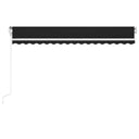 Schaffe einen angenehmen und kühlen Platz in deinem Außenbereich mit dieser einziehbaren Markise! Diese Outdoor-Markise ist mit einem rostfreien, pulverbeschichteten Alurahmen ausgestattet, der sie leicht und zugleich robust macht. Der Markisenstoff dieser Terrassenmarkise besteht aus hochverdichtetem Polyester mit PU-Beschichtung, die UV- und wasserbeständig ist. Zusätzlich können Winkel und Höhe nach Belieben angepasst werden. Mit der mitgelieferten Fernbedienung können Sie die automatisch einziehbare Markise einfach öffnen und einfahren. Mit der langen Handkurbel kann die Markise reibungslos geöffnet und geschlossen werden. Die Gelenkarmmarkise ist auch mit einem Windsensor ausgestattet, der Ihre Markise an windigen Tagen automatisch schließen kann. Darüber hinaus sorgen die LED-Lampen am Abend für energiesparende Beleuchtung.