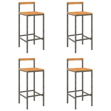 Barhocker 2 Stk. Grau Poly Rattan und Massivholz Akazie