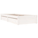 Mit seinem schlichten und zeitlosen Design ist dieses Holzbettgestell eine praktische und dekorative Ergänzung zu deinem Schlafzimmer. Massives Kiefernholz: Massives Kiefernholz ist ein wunderschönes Naturmaterial. Kiefernholz weist eine gerade Maserung auf und die Aststellen verleihen dem Material seine charakteristische, rustikale Optik.Robuste Latten: Die Sperrholzlatten sorgen für eine gute Gewichtsverteilung und auch dafür, dass die Matratze bei jeder Bewegung Ihres Körpers während des Schlafes an Ort und Stelle bleibt.Stauraum: Die mitgelieferten Bettschubladen bietet reichlich Stauraum zur Aufbewahrung wichtiger Sachen, um für Ordnung in Ihrem Zimmer zu sorgen. Hinweis:Die Lieferung umfasst nur einen Bettrahmen. Die Matratze ist nicht inbegriffen. In unserem Shop finden Sie auch passende Matratzen.Dieser Bettrahmen ist für eine Matratze mit den Maßen 90 x 190 cm (3FT Single) geeignet.