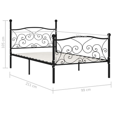 Bettgestell mit Lattenrost Schwarz Metall 90×200 cm