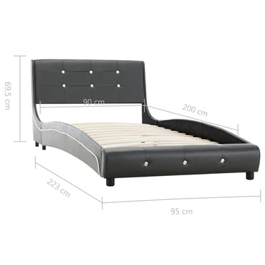 Dieser klassische Bettrahmen wird ganz bestimmt zum Mittelpunkt Ihres Schlafzimmers. Dieser Bettrahmen zeichnet sich durch ein schlichtes und dennoch elegantes Design aus und verleiht Ihrem Schlafzimmerdekor einen Hauch von elegantem Charme. Dieser Bettrahmen aus Eisen und Holz ist äußerst robust und langlebig. Die pulverbeschichteten Stahlbeine verleihen dem Bett zusätzliche Haltbarkeit. Darüber hinaus wirkt das mit strapazierfähigem Kunstleder bezogene Bett einladend. Dieser Bettrahmen ist für eine Matratze von 90 x 200 cm geeignet. Bitte beachten Sie, dass die Lieferung nur den Bettrahmen beinhaltet. Eine Matratze ist nicht enthalten. Das Bettgestell ist leicht zu montieren.