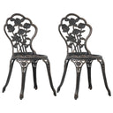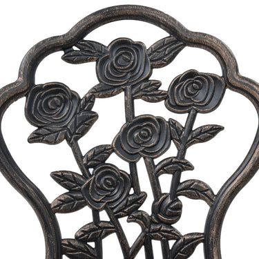 Diese Bistrostühle werden mit ihren dekorativen, blumigen Details eine großartige Ergänzung für Ihre Terrasse oder Ihren Garten sein. Es wird Ihnen Spaß bereiten, Ihren Freunden auf diesen Stühlen eine Tasse Kaffee zu servieren. Das Bistrostuhl-Set besteht aus hochwertigem Aluminiumguss, der wetterbeständig und sehr langlebig ist. Die gusseisernen Beine tragen zur Robustheit des Sets bei. Das detaillierte Blumenmuster verleiht jedem Garten, jeder Terrasse oder jedem Wintergarten einen romantischen Charakter.
