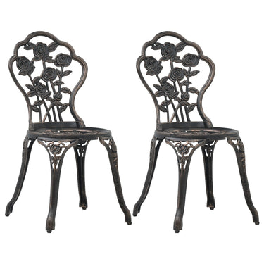Diese Bistrostühle werden mit ihren dekorativen, blumigen Details eine großartige Ergänzung für Ihre Terrasse oder Ihren Garten sein. Es wird Ihnen Spaß bereiten, Ihren Freunden auf diesen Stühlen eine Tasse Kaffee zu servieren. Das Bistro-Set besteht aus hochwertigem Aluminiumguss, der wetterfest und sehr langlebig ist. Die gusseisernen Beine tragen zur Stabilität des Sets bei. Das detailreiche Blumenmuster verleiht jedem (Winter-)Garten und jeder Terrasse eine romantische Note. Die Lieferung umfasst 2 Bistrostühle.