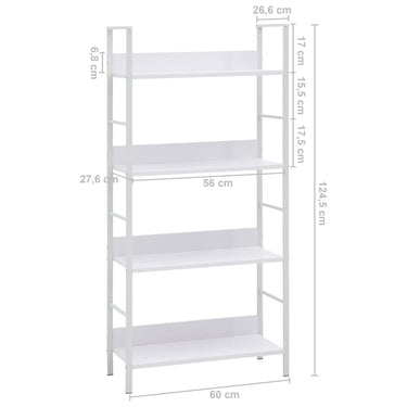 Dieses Regal mit 4 Ablagen kann im Wohnzimmer als Bücherregal oder Ausstellungsregal für Dekoartikel sowie auf der Terrasse als Blumenständer eingesetzt werden. Es stellt eine zeitlose Ergänzung zu Ihrer Einrichtung dar. Das Regal besteht aus Holzwerkstoff und lässt sich leicht mit einem feuchten Tuch reinigen. Die robuste Stahlkonstruktion macht es rostbeständig und trägt außerdem zum industriellen Stil des Metallregals bei. Das Bücherregal verfügt über ein kompaktes Design, wodurch der begrenzte Platz optimal genutzt wird. Dieses Standregal hat 4 Regalböden und bietet dadurch reichlich Platz, um Ihre Büchersammlung, Blumen, CDs, DVDs und andere Dekoartikel ordentlich aufzubewahren und zur Schau zu stellen. Das Standregal ist einfach zu montieren.